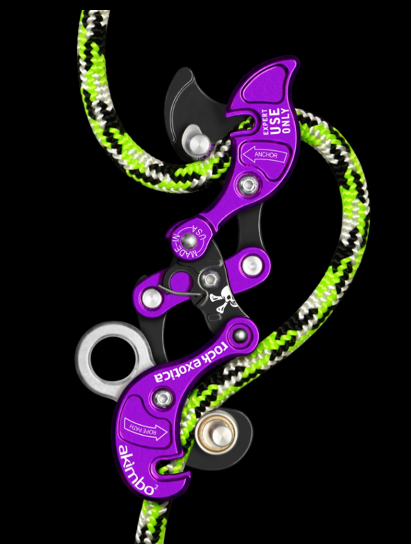 Rock Exotica Akimo 2.0 pre-order Levering: in september verwacht. De Akimbo² is een uniek klimhulpmiddel voor boomverzorgers waarmee de klimmer kan klimmen, dalen en positioneren op zowel SRS als MRS. De Akimbo² is voorzien van touwcontactvlakken (bovenste en onderste pinnen ) die zich aanpassen aan een breed scala aan touwdiktes, afgestemd op de behoeften of voorkeuren van de klimmer – allemaal zonder gereedschap of demontage van onderdelen. De pinnen kunnen ook worden aangepast om de wrijving te verhogen of te verlagen, afhankelijk van veranderingen in het gewicht van de klimmer, veranderingen in de omgeving of om de natuurlijke slijtage van de contactvlakken van de Akimbo aan te passen. De Akimbo² kan eenvoudig worden geopend om in enkele seconden een touw in het midden te verwijderen of te installeren, en kan weer worden samengedrukt tot een compacte vormfactor, zowel op als naast de klimlijn. Bij het klimmen op SRT lijn met een borstharnas (SRS-modus) biedt de Akimbo² twee extra verbindingspunten. De bovenste verbinding maakt gebruik van een draadpoortje waarmee u snel een karabijnhaak of lus van een koord kunt vastmaken of loskoppelen die geen PBM is, terwijl het belangrijkste verbindingspunt voor levensondersteuning ook kan worden gebruikt voor het bevestigen van een borsttuig met een karabijnhaak die geen PBM is.
