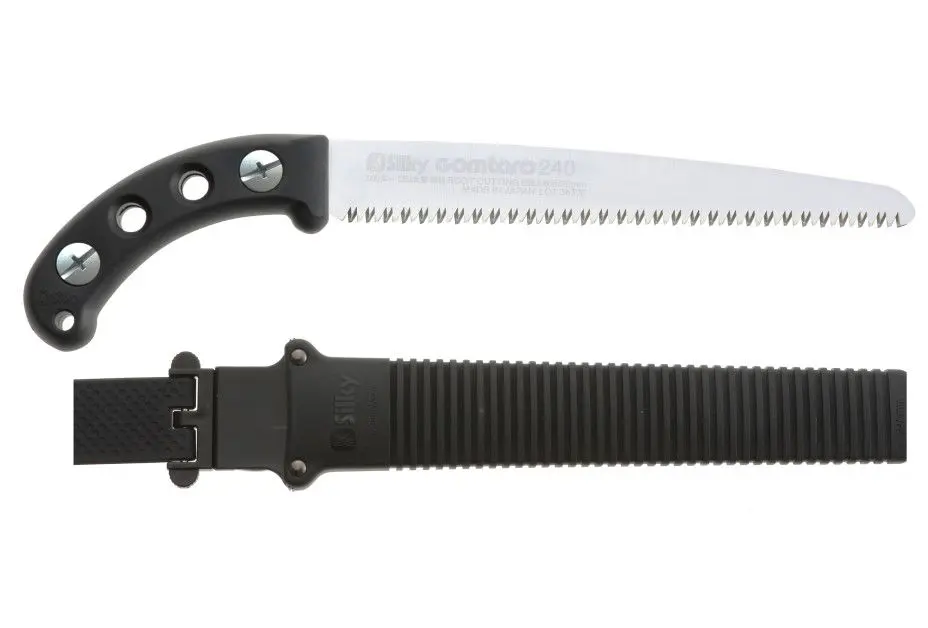Silky Gomtaro De Gomtaro, basisserie van de Silky snoeizagen met recht zaagblad, wordt wereldwijd door professionals gezien als onmisbaar onderdeel van de basisuitrusting. Het geavanceerde ontwerp van de Mirai-Me vertanding, de tanden zijn in de bladdikte ingeslepen, er is geen tandzetting, zorgt ervoor dat u moeiteloos door het hout zaagt met een zeer gladde afwerking van de zaagwond tot gevolg. Het uit een speciale staallegering gemaakte blad bestaat uit één geheel en loopt door in het handvat wat ervoor zorgt dat de Gomtaro lang scherp blijft en een perfect balans heeft. Het blad is voorzien van een hardchromen laag dat beschermd tegen roest en de plakeffecten van hars. Daarnaast zorgt de chroom laag voor een zeer slijtvast oppervlak. Het uit rubber gegoten handvat ligt comfortabel in de hand en reduceert trillingen sterk. De zaag past precies in het op maat gemaakte, zwarte kunststof holster met afneembare riemhouder. Het holster dat aan het been (er zijn speciale Silky leg straps verkrijgbaar) of de riem kan worden bevestigd, heeft onderaan een opening, waardoor vocht en zaagsel uit de holster kunnen wegvloeien. De Gomtaro is verkrijgbaar in vier lengten: 210 - 240 - 270 en 300 mm.
